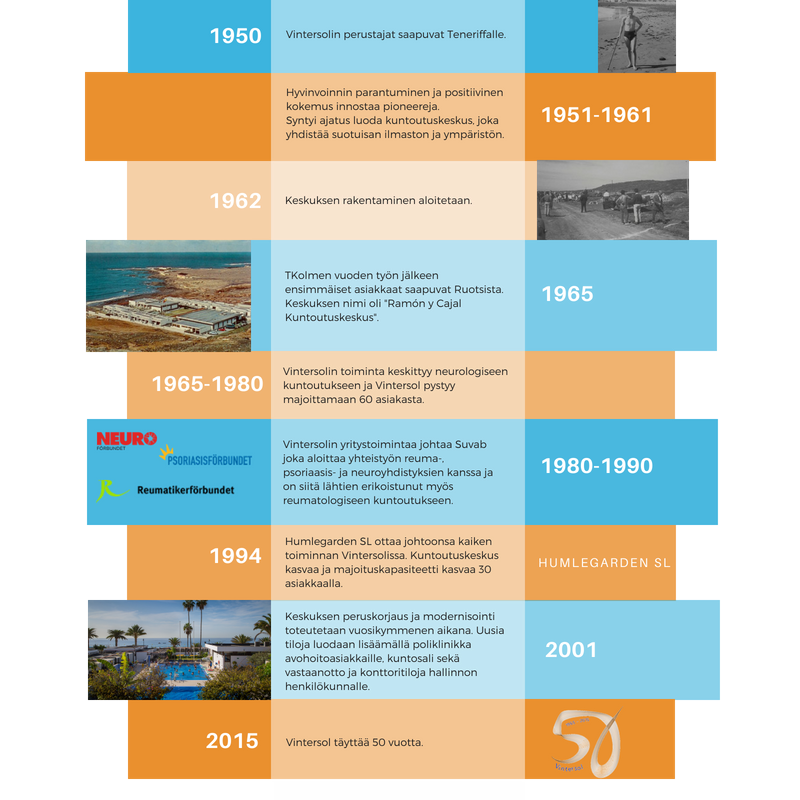 Vintersolin historia ulottuu vuoden 1950 vuosikymmenelle, jolloin ruotsalaiset multippeliskleroosia sairastava Bengt Rylander ja reumaatikko Olle Ryding saapuivat Teneriffalle toivoen hyvinvointinsa parantuvan Kanariansaarten lämpimässä ilmastossa.