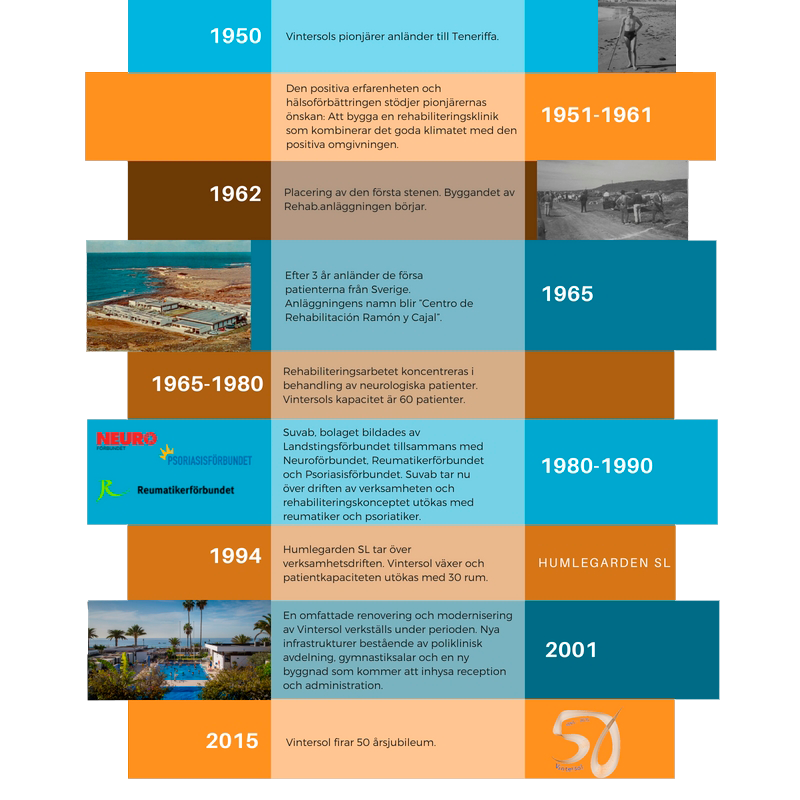 Vintersol er en del av svensk handikapphistorie. Nuvaerende Vintersol ble inviet i november 1965. Det vat sluttmålet for de pionerer som allerede på 50-tallet reíste till Tenerife med håp om forbedring av sine sykdommer.